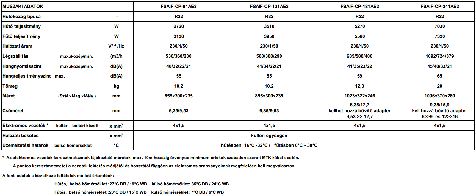 • Hűtő teljesítmény : 2.5 (0.5 - 3.35) kW